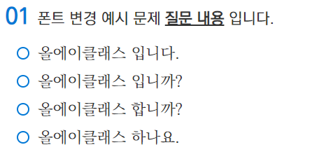 기출문제 폰트를 다양한 언어와 기출문제지와 유사한 폰트로 변경하였습니다.
